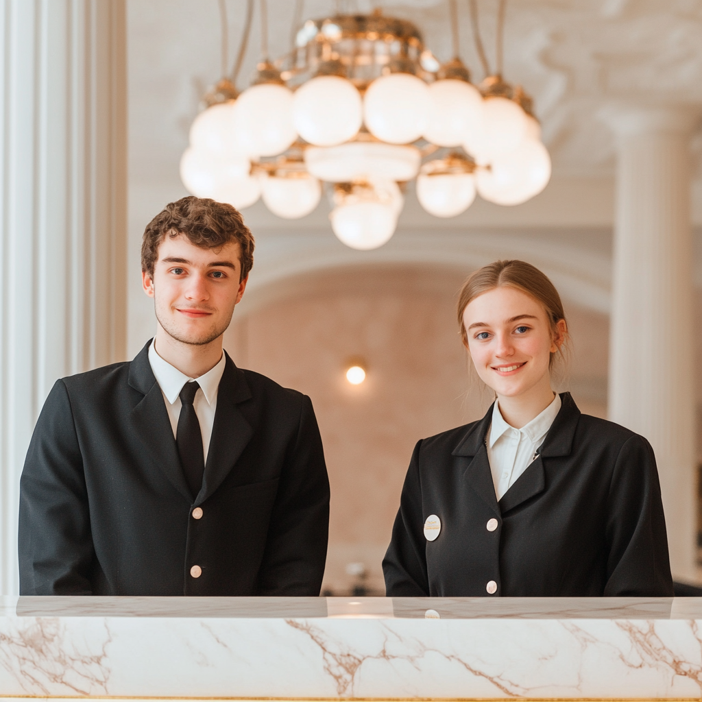 Imagine your guests' delight as they're greeted by staff in polished, stylish uniforms. Our hospitality attire combines comfort and professionalism for every role. Our designs help hotels, restaurants, and event venues. They are fast-paced and tailored for the industry. Elevate your service with uniforms that make lasting impressions. Your team's appearance sets the tone for memorable experiences. Choose our attire to enhance your brand and impress guests from the moment they arrive.
