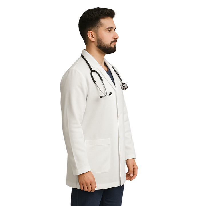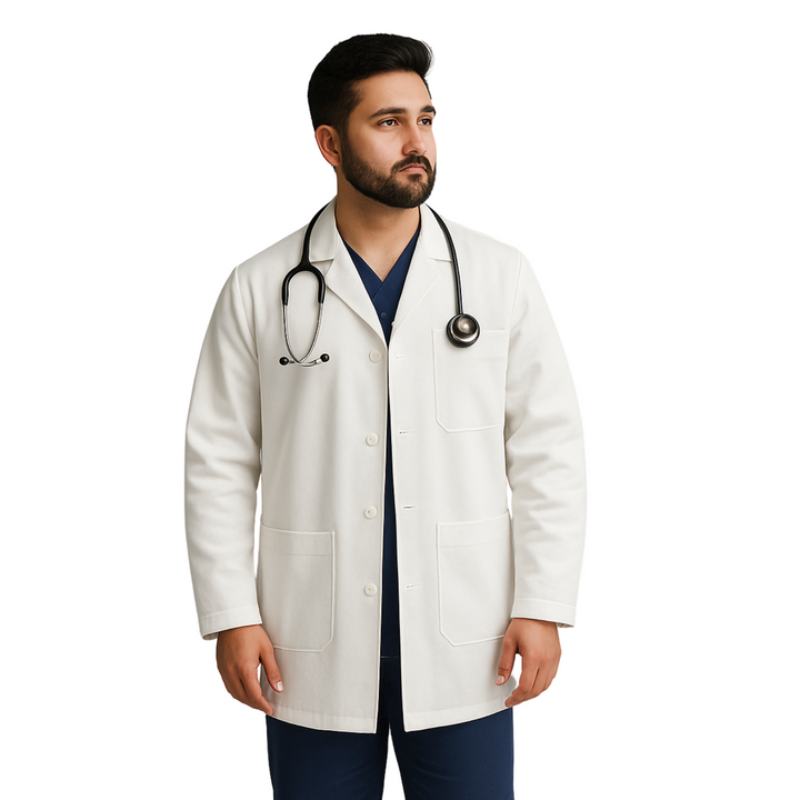 Men's White Cotton Lab Coat - Professional Doctor's Coat by Just Needles (S-3XL) | Made in UAE