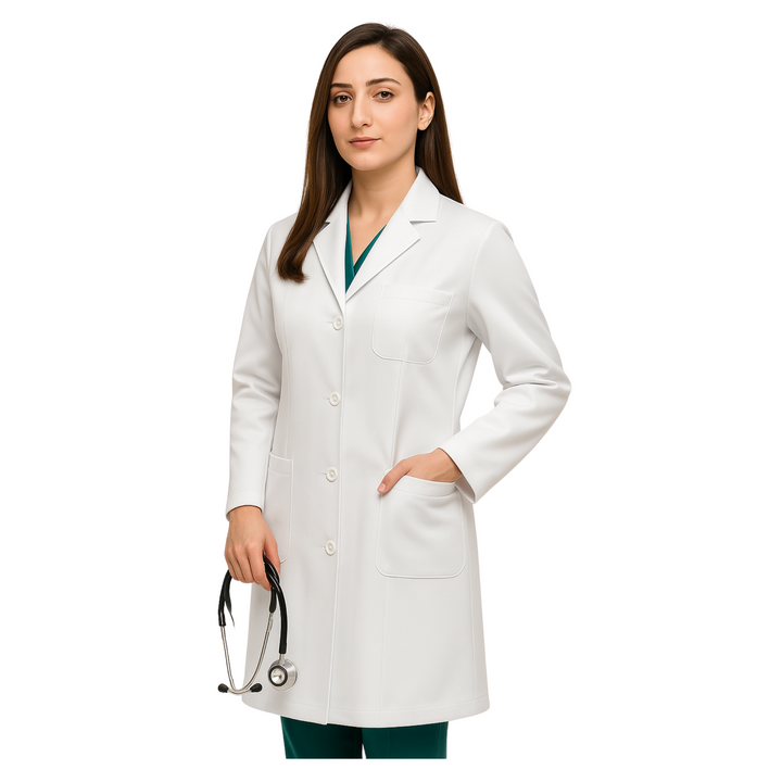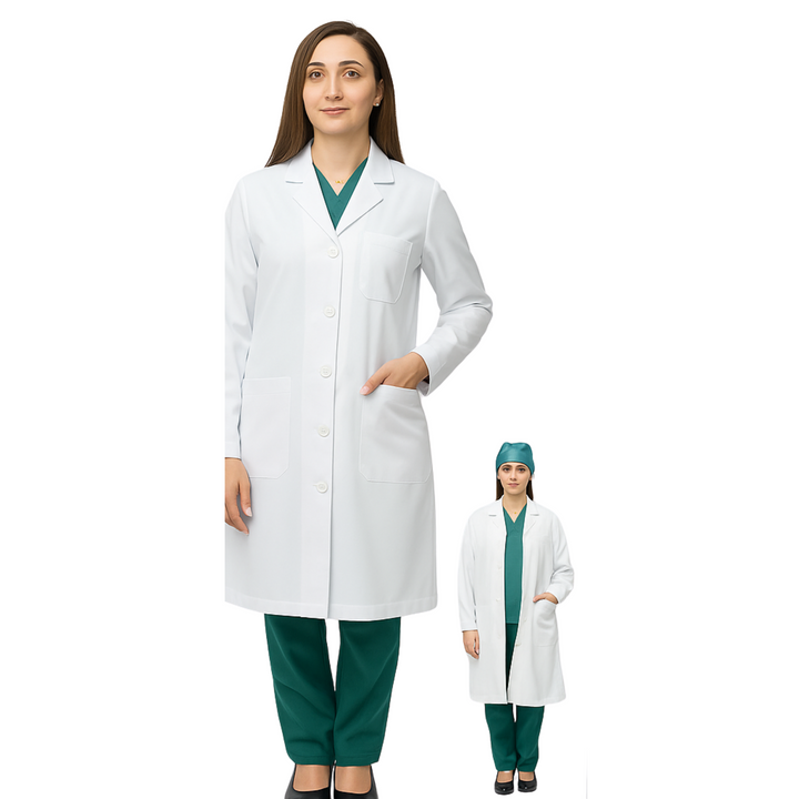 Women's Premium White Lab Coat - Wrinkle-Free Polyester Yarn | Just Needles UAE