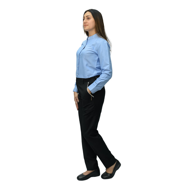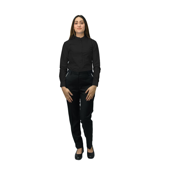 Combine sophistication and practicality with this versatile women’s dress shirt, tailored for both formal and hospitality settings. Designed with a regular fit and ban collar style, this shirt is a perfect blend of elegance and functionality.