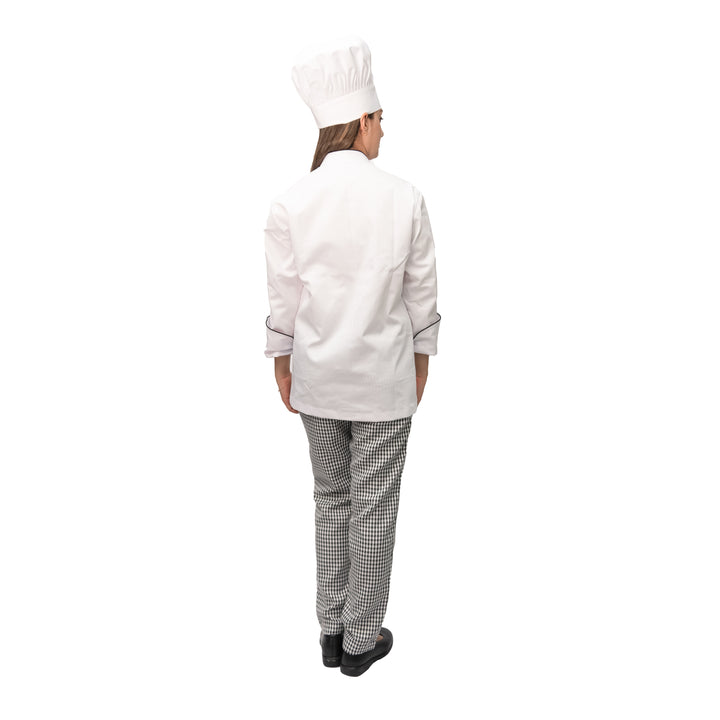 The long chef cap is made up of cotton and pure polyester for durability and ventilation for long hours in the kitchen.