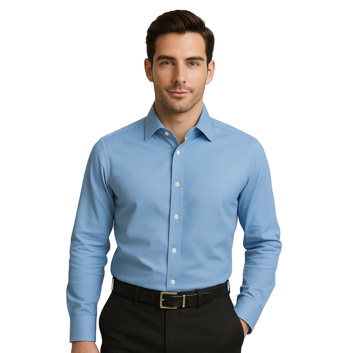 Upgrade your formal wardrobe with this premium men's dress shirt, tailored from high-quality twill poly cotton fabric (65% polyester, 35% cotton). Perfect for office wear, hospitality uniforms, or personal use, it offers exceptional comfort, breathability, and durability. Crafted by Just Needles Dubai, each shirt is made in the UAE with precision stitching and zero color bleed.