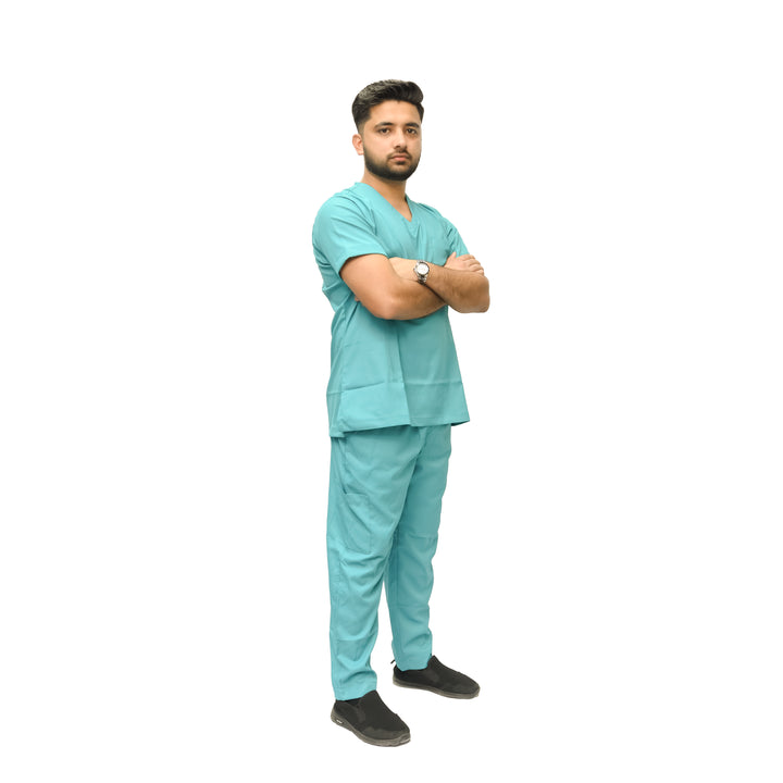 The mens medical scrub suits are made up of premium quality fabric of cotton and polyester , offering a balance of comfort and durability.it is very nice and easy to wear.