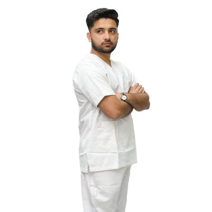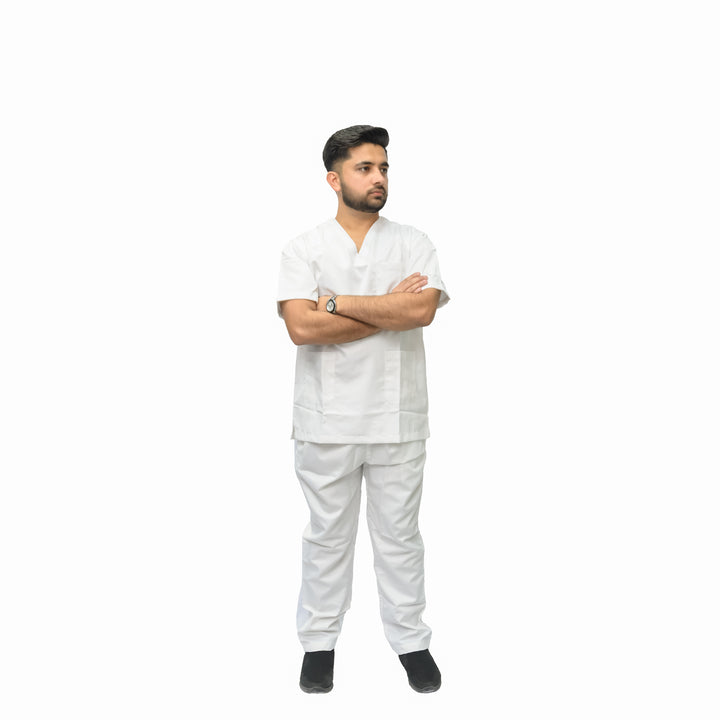 This men’s V-neck medical scrub suit offers exceptional comfort and functionality, crafted from a premium twill cotton viscose fabric at 180gsm. Perfect for medical professionals, it combines lightweight softness with breathability for optimal performance.
