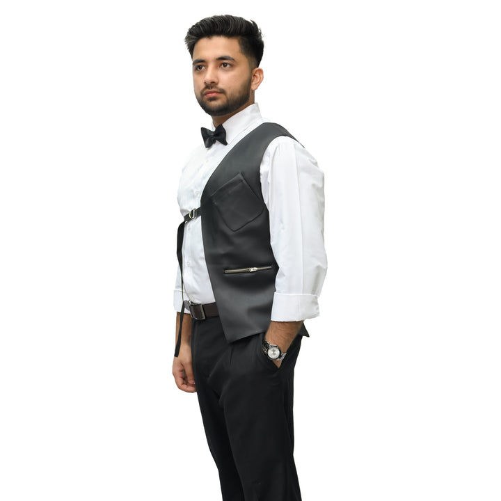 Unisex Leather Vest - Half-Sided Style with Belt Closures