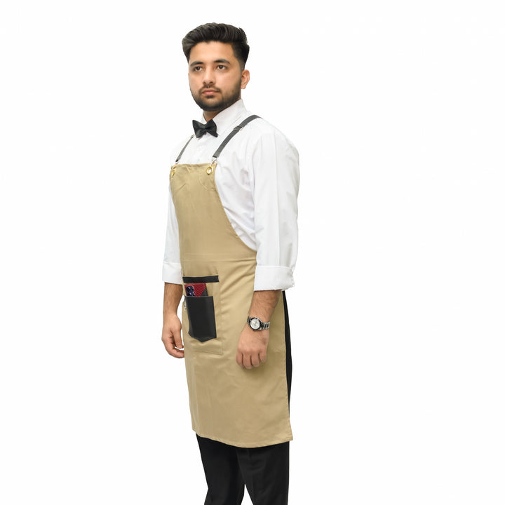 Unisex Long Apron - High-Quality Twill Cotton with Leather Accents