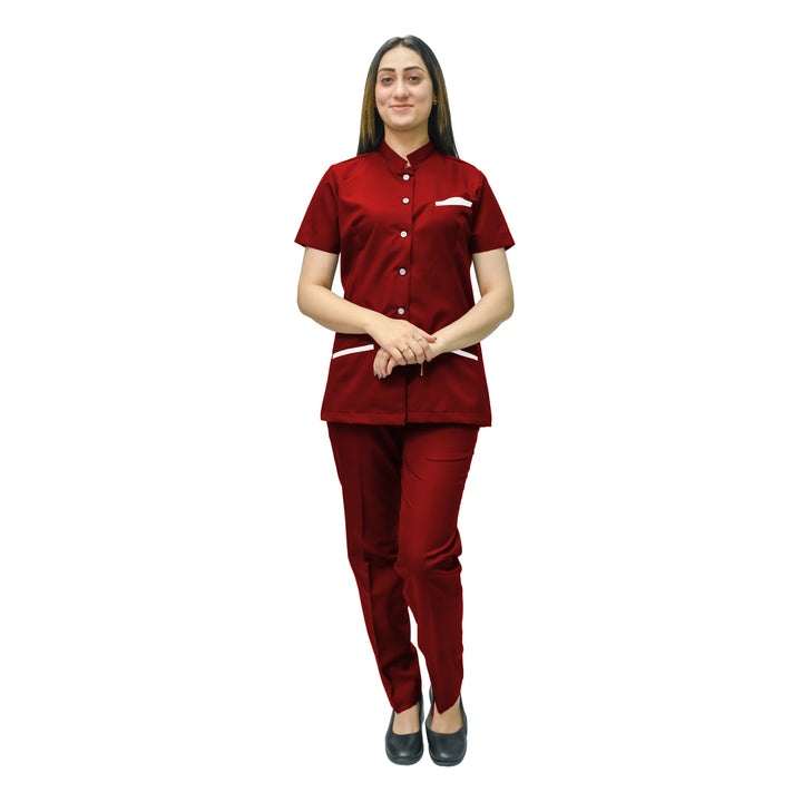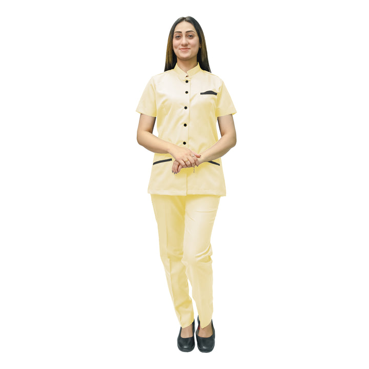 This uniform set is designed to blend style and functionality, ideal for professionals who prioritize appearance and comfort in their work environment.